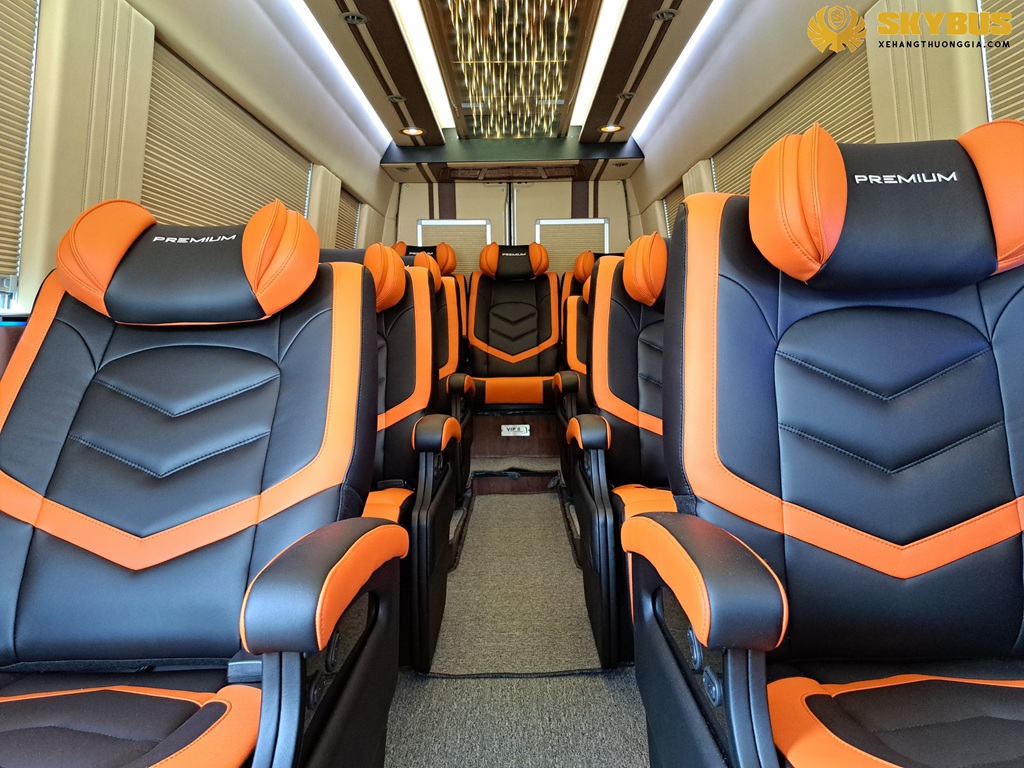 Bao gồm cả dòng xe 9 chỗ và 11 chỗ ghế VIPs, các ghế ngả trượt sâu giúp khách hàng thư giãn được trong thời gian di chuyển. Trên xe còn phục vụ nước uống, khăn lạnh và wifi tốc độ cao để hành khách có thể xem phim hoặc lướt web tùy thích.